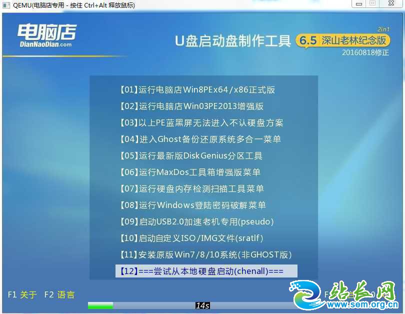 1、设置U盘启动:不同的电脑设置U盘启动的方法也不会完全一样,不过一般都会类似,新款的电脑都会有开机快捷键(如F12 F11 F9 F2 ESC 等)调出启动项选择界面!如下图: