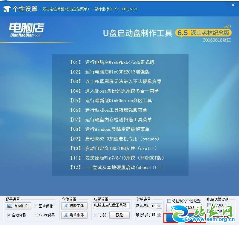 2、首先我们做一下个性化设置,为什么?(去掉广告和软件植入!)点击个性化后出现以下界面,取消右下角的电脑店赞助商。(当然你无所谓也可以略过这一步);