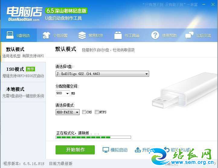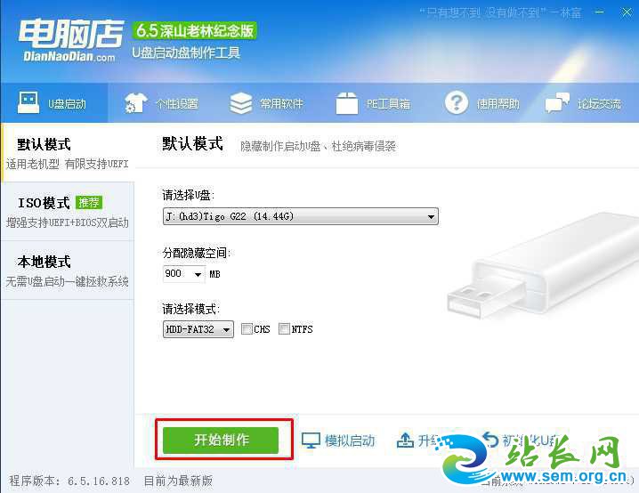 4、回到制作界面 插上U盘然后点击【开始制作】;(U盘会格式化,建议用空盘或备份好重要数据)