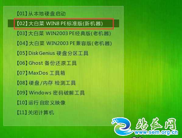 2、出现U盘启动界面后选择 WIN8PE进入,(版本低的WINPE可能会无法识别硬盘)