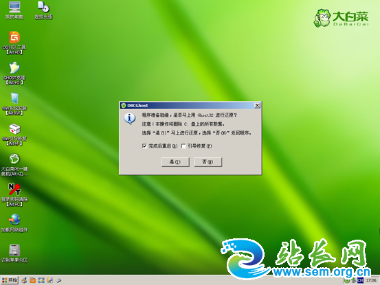 6、恢复完成,重启系统,开始下一个阶段的安装,一般都是自动的了。