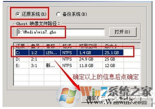 我的gho文件是拷贝到的路径是:D:\media\win7.gho