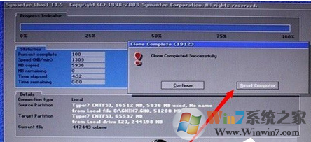 4、还原文件完成后点击“reset computer ”提示重启你的电脑。