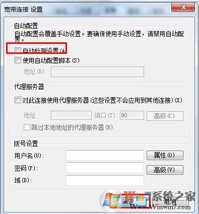 4、取消勾选【自动检测设置】,然后点击确定按钮。