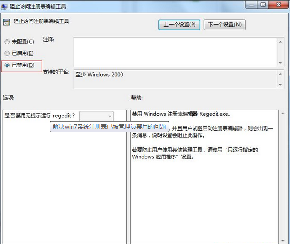 现在针对win7系统出现的各种问题中,给出的解决方法大多时通过修改注册表来解决的,win7系统将各种软件的运行变量都存储到了注册表表中,所以注册表是一个储存设置的强大数据库,很多问题我们都能够通过修改注册表来得到很好的解决。当时很多电脑技术人员为了阻止个人胡乱修改注册表导致系统崩溃,对系统设置了一道门槛,就是禁用了启动注册表,那么我们该怎么打开被禁用的注册表呢?下面我们就一起来看看该如何解决注册表打不开