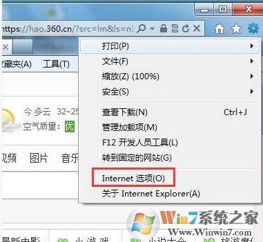 1、修改IE的Internet选项设置,打开IE浏览器,点击“工具”进入Internet选项。