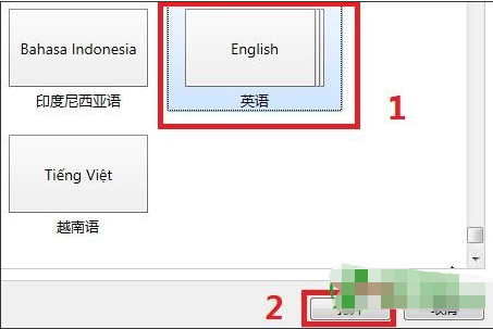 6、根据需要,使用鼠标左键单击选择语言种类,然后点击右下方的“打开”。(图6示例为英语,实际中请根据需要修改)若系统未安装所选中的语言,Windows 会自动在线更新语言包,需要等待下载完成;