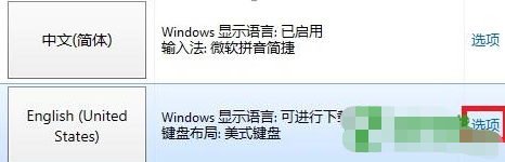 7、点击窗口中间刚刚添加的语言后方的“选项”;
