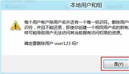 4、提示“删除用户后无法还原且可能导致无法访问其拥有的资源”,点击“是”删除用户。参见下图
