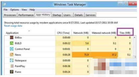 微软还增加了全新的任务管理器体系,以便用户可以跟踪每个应用占用的网络带宽。一般情况下,图块的资源占用是比较低的。微软在9月Build大会发布Windows8开发者预览版以后,建立了监测服务。成千上万的用户安装Windows8之后,可以看到巨大数量的通知在全球快速蔓延。