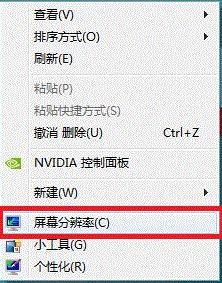 1、桌面空白处右击,选择“屏幕分辨率”;