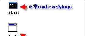 2、重启系统后,检查system32和dllcache目录。发现改名后的cm.dll都还在,但system32目录下出现了一个怪怪的cmd.exe(见下图)。这个cmd.exe的logo不同于正常的cmd.exe,这个就是病毒现从I386目录里找出来的!