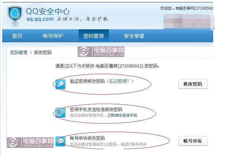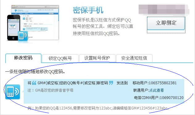 通过手机修改密码,但前提是需要先绑定手机(不知道如何绑定手机的用户可以阅读下:怎么申请qq号)。通过已经绑定手机号来修改密码非常方便,如下图:
