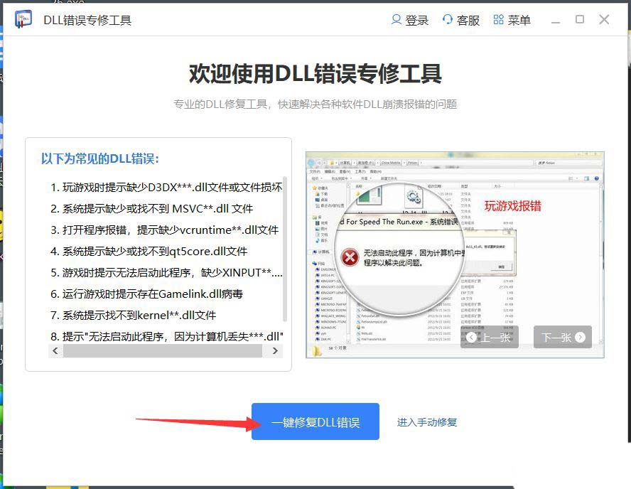 一款跨平台全能修复工具,主要解决各种因为dll缺失,异常,错误导致的系统奔溃,比如msvcp.dll、vcruntime.dll、mfc140u.dll、msvcr.dll等软件无法启动和使用的问题。