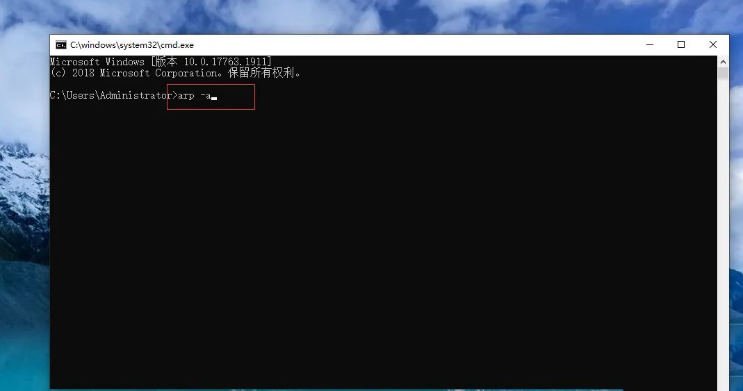 3、打开“命令提示符”,输入命令“arp -a”按回车键。