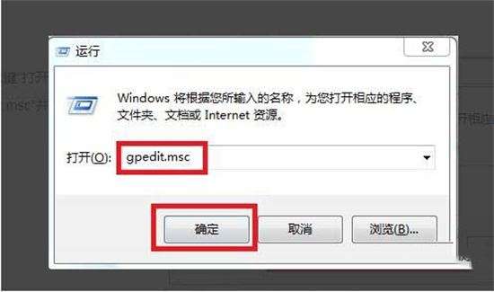 1、同时按下“win+R键”打开电脑中的运行,在里面输入“gpedit.msc”并点击确定。