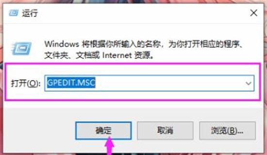 1、首先按下快捷键【Win+R】,打开运行窗口,在里面输入【GPEDIT.MSC】,再点击【确定】按钮,这串字符是用来打开【本地组策略编辑器】的。