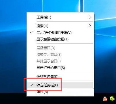 1.首先在右侧的任务栏上右键,在弹出的右键菜单中,看一下「任务栏锁定」前面是否有勾,如果有勾,需要将前面的勾去掉,如果前面没有勾,则无需操作;如图所示: