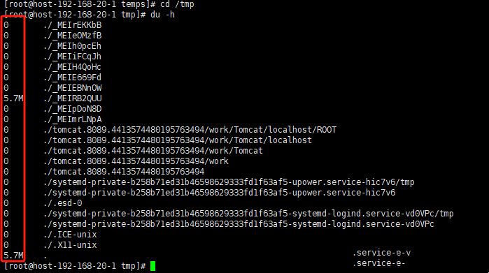 2、进入/tmp路径查看占用情况,发现文件占用才5.7M,实际总空间有16G。