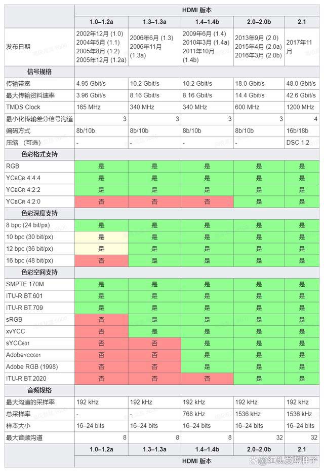 数据线皆支持,如Deep Color和xvYCC等规范。标准与高速HDMI数据线皆可选配支持以太网。HDMI 2.1版本则提供新的48G线材规格,包含所有功能。