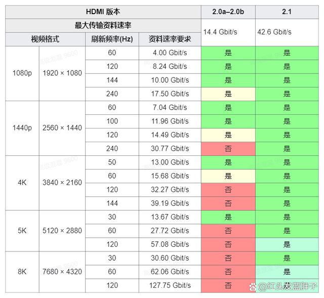 基本上HDMI2.0和HDMI2.1,都是可以直接支持1080p到4K,甚至是低更新率的5K都可以。