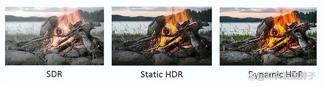 SDR是标准动态范围,它的光线细节比另外两张图,明显少很多。