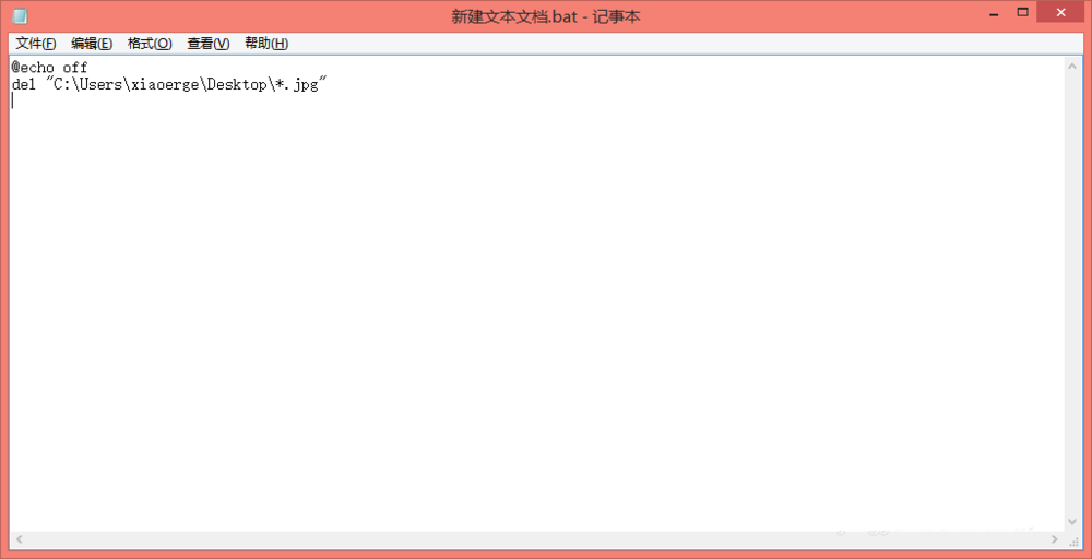 @echo off del "C:\Users\xiaoerge\Desktop\*.jpg" del "C:\Users\xiaoerge\Desktop\*.png"