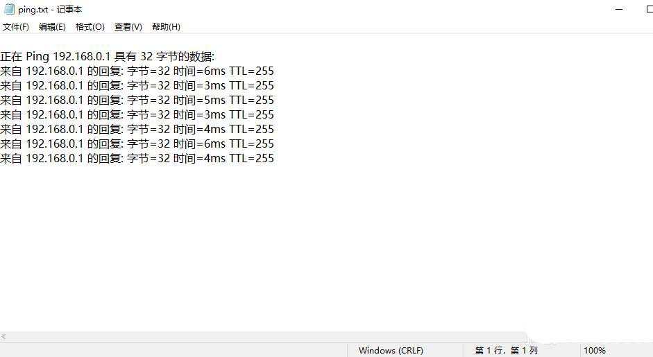 4、打开ping.txt文件夹,即可看到ping测试的结果。