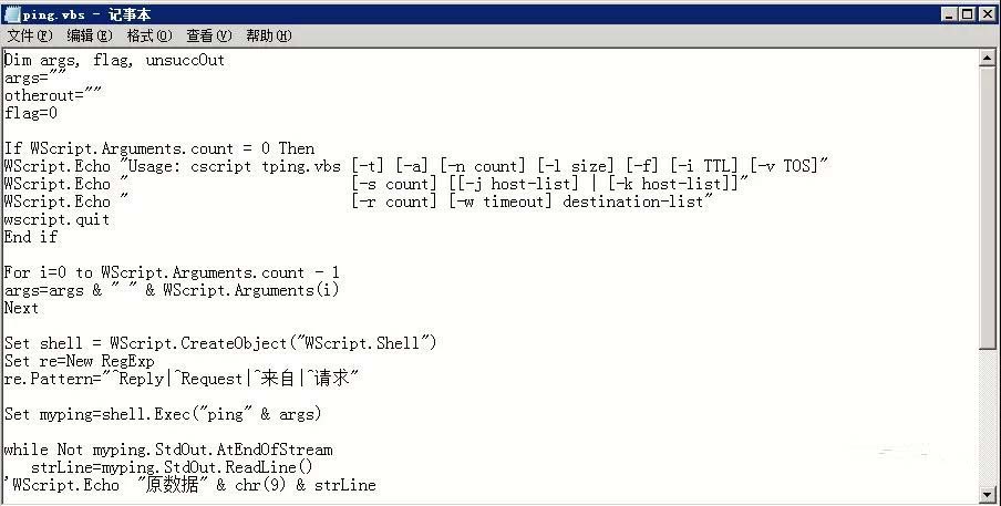 1.将以下内容复制粘贴到文本文档,并改格式为vbs(或者后台回复ping即可下载该脚本,脚本出处不详,感谢大神!)