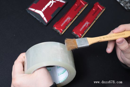 内存金手指就是与主板内存插槽连接的一排金黄色铜片,清理时可以用橡皮反复擦拭,直到金手指出现光亮的色泽,这样就可以将附着在金手指上的氧化物清除掉,使之与内存插槽之间保持良好的接触。由于示例中使用的是HyperX系类高速内存,存储颗粒上覆盖有散热片,因此无需对内存颗粒进行清洁。如果是普通的内存条,清理存储颗粒时要注意力道,切勿损坏贴片电容组建。