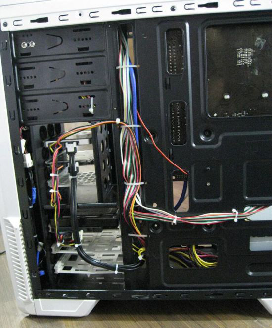 追求完美的可以自己走一下背线,带来的好处就是给机箱一个良好的风道,如果偷懒或者水平有限那就尽量让线溜边走,不过记得最后要用塑料扎带扎好,防止线掉了碰到散热风扇。