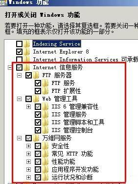 你会看到internet信息服务,将其子目录下的各项服务都打勾,点击确定,保存设置。