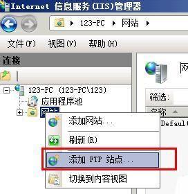 找到网站这个选项,右键单击,然后选择添加FTP站点