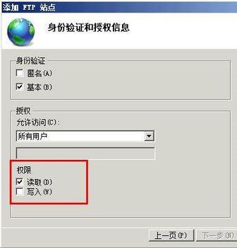 设置身份验证和权限,一般设置的权限为读取,写入的话有一些风险,需要谨慎。点击完成即可添加FTP站点。