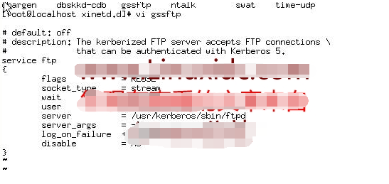 cd /etc/xinetd.d ,编辑ftp服务的配置文件gssftp的设置: