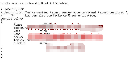 cd /etc/xinetd.d ,察看telnet服务的配置文件krb5-telnet的设置: