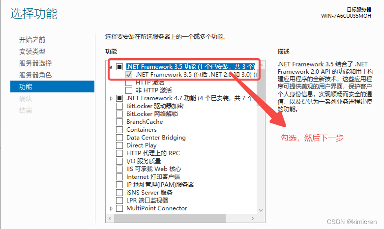 由于QA环境中的OSCE V16服务端是部署在虚拟机Windows Server 2019上,当进行数据库的迁移操作时,操作系统会提示缺少.NET Framework 3.5组件(SQL Server数据库系统的运行需要依靠.NET Framework 3.5,但是Windows Server2019默认情况下是并没有安装.NET Framework 3.5的),常规的从官方下载软件包,然后手工安装是不成功的,详细解决方法如下。