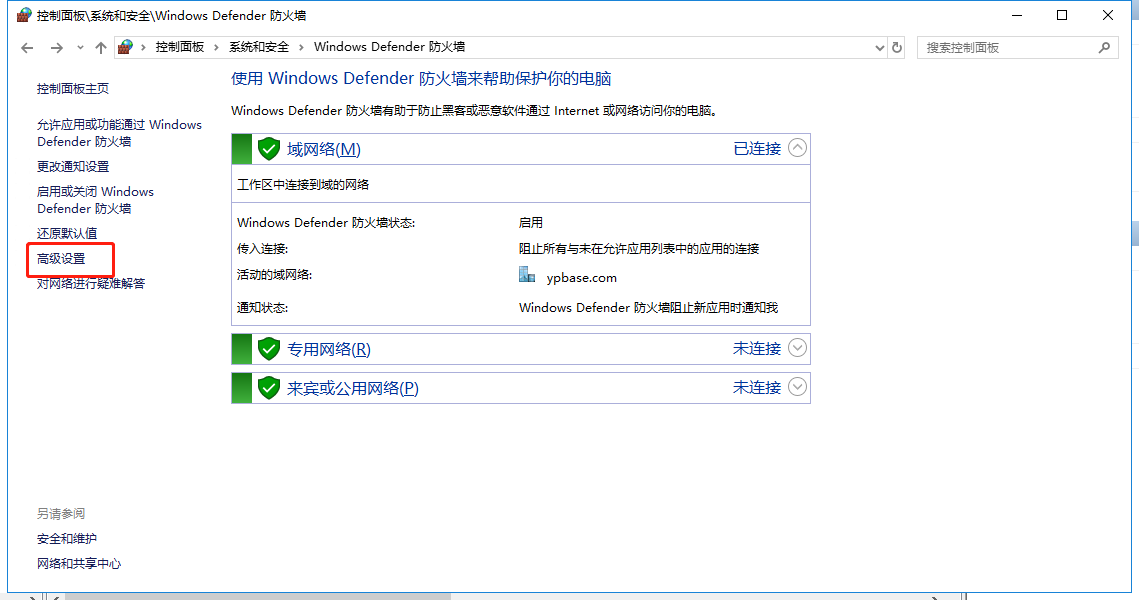 - 控制面板-系统和安全-Windows Defender 防火墙
