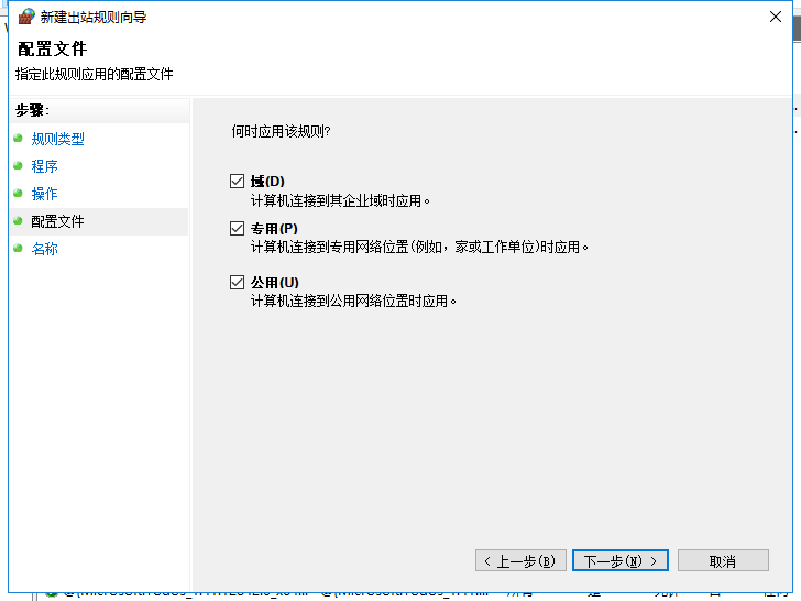 windows系统默认的规则:默认阻止入站连接,默认允许出站连接。也就是说,凡是入站连接,任何程序和端口都要在防火墙上配置入站规则,否则都会被禁止。