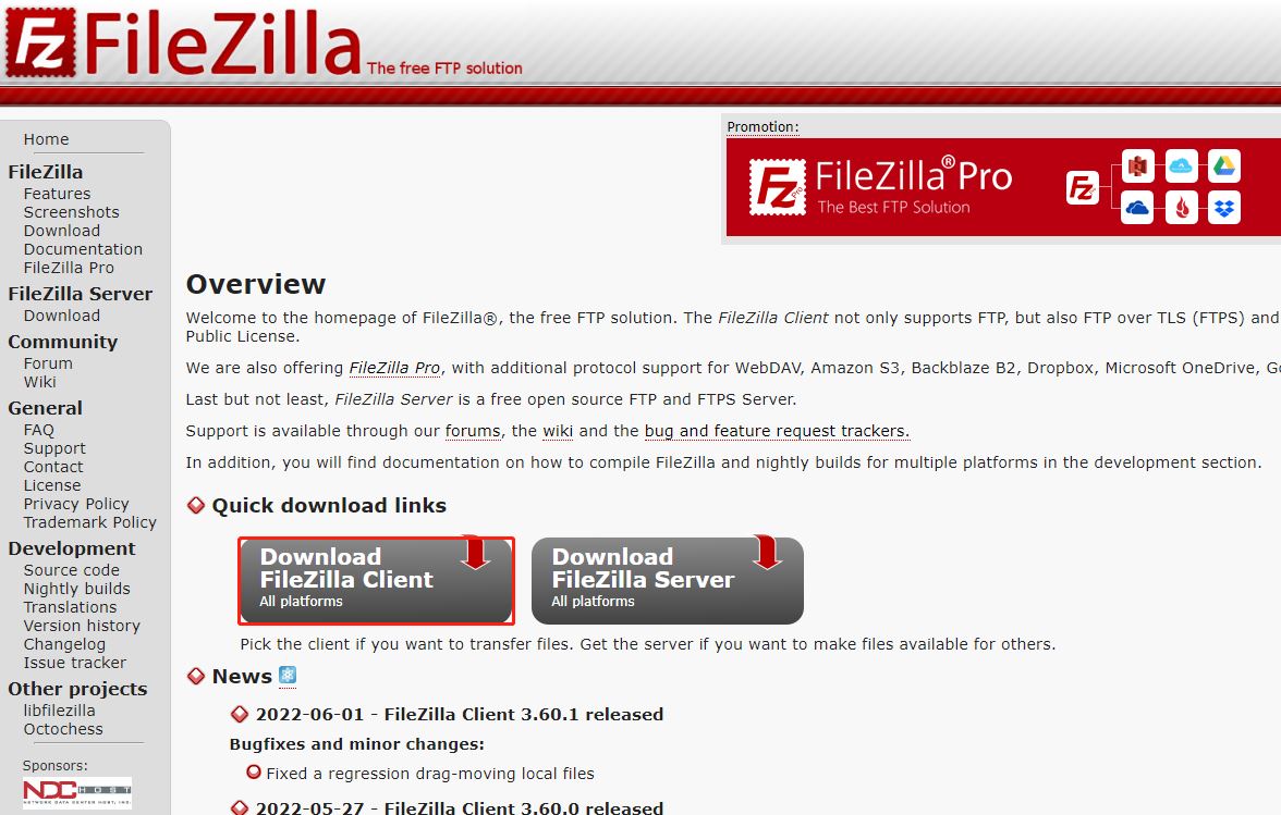 FileZilla 包括FileZilla客户端和FileZilla Server。