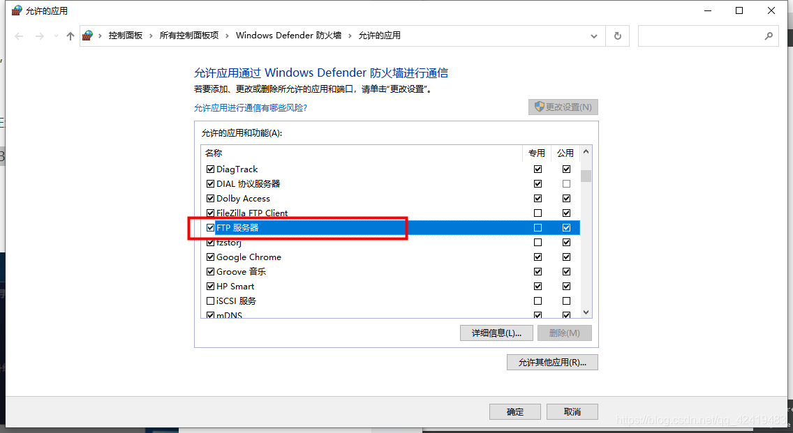 在FTP服务器前打勾;