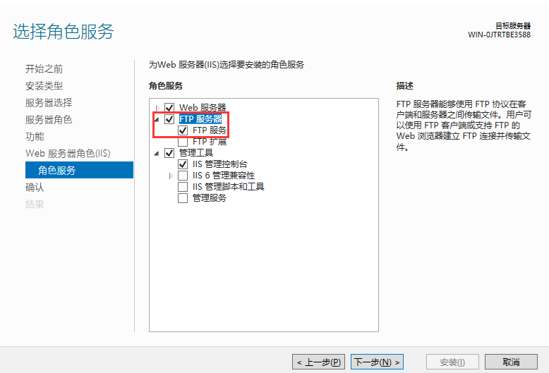 5、找到FTP服务器并选择,然后选择下一步