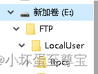 完成后 1、在指定的盘下创建FTP目录,用于各个用户之间各自 访问各自的目录,图如下: