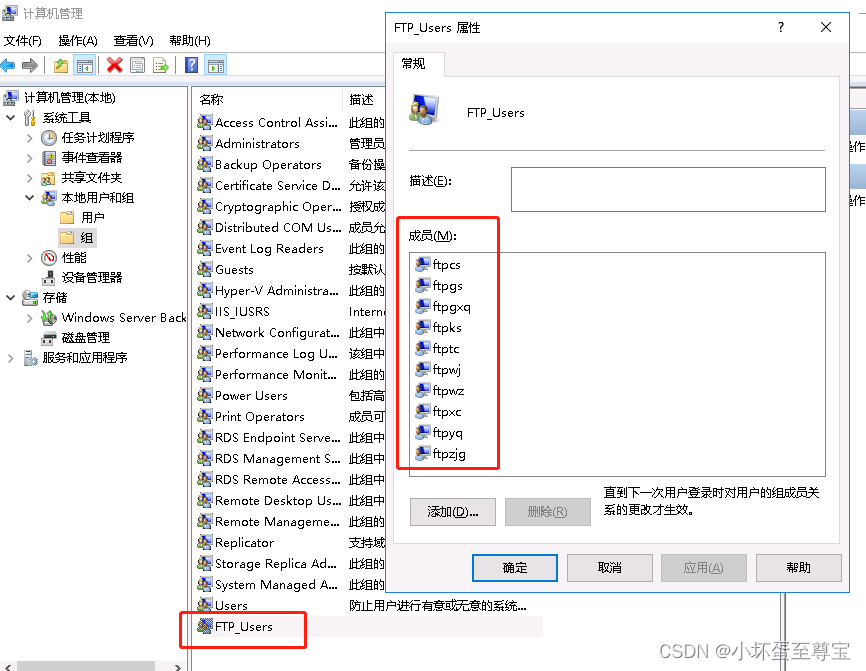 2、在计算机管理创建对应的用户和组