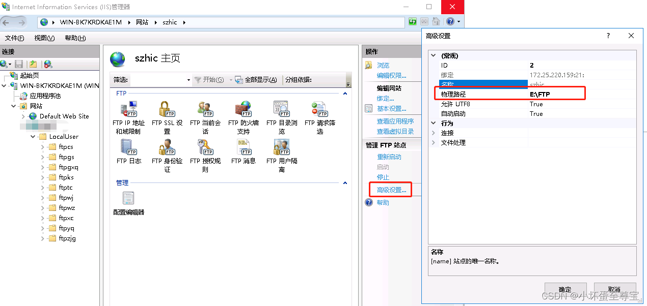 物理路径填写你所指定盘符下的FTP目录即可。