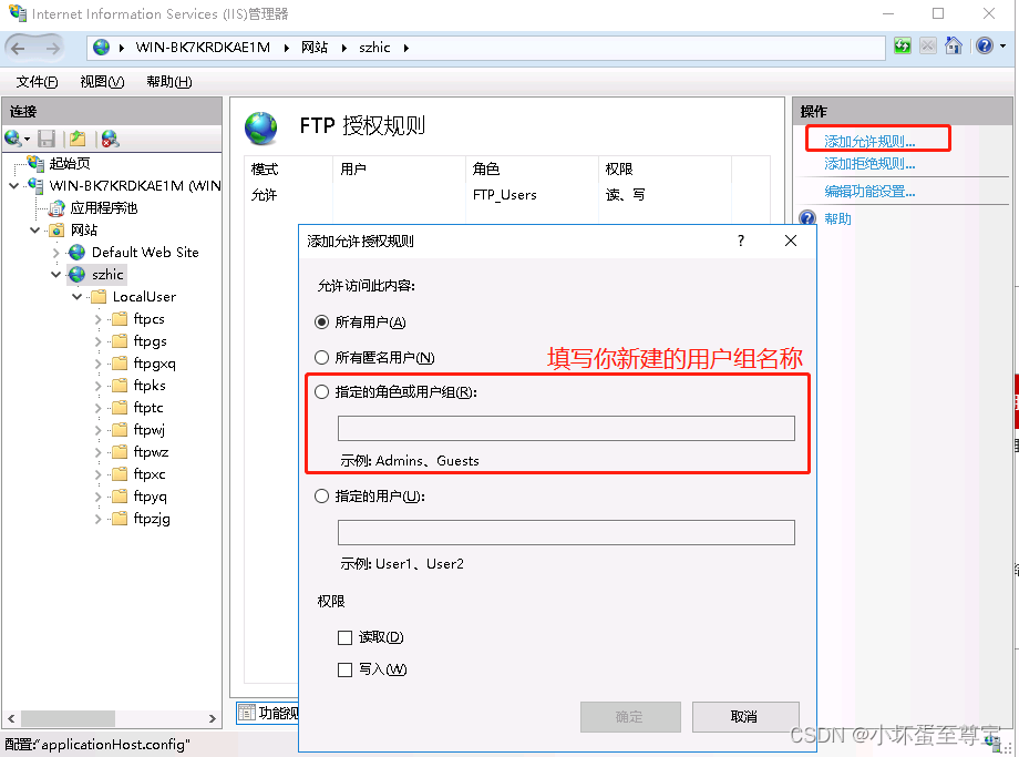 2、FTP授权规则,添加用户组