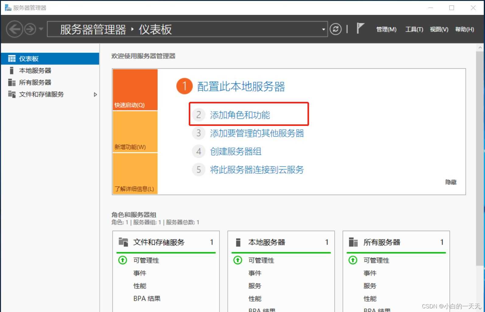 打开服务器管理器,选择【添加角色和功能】