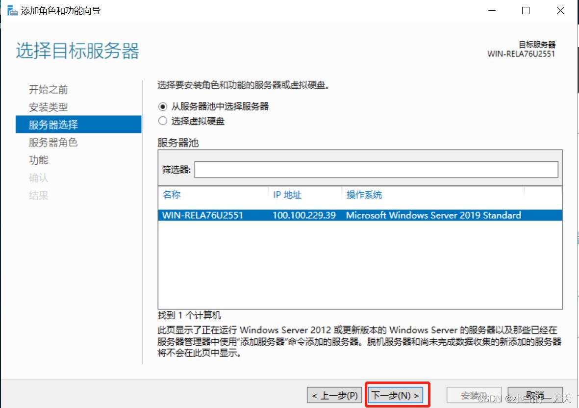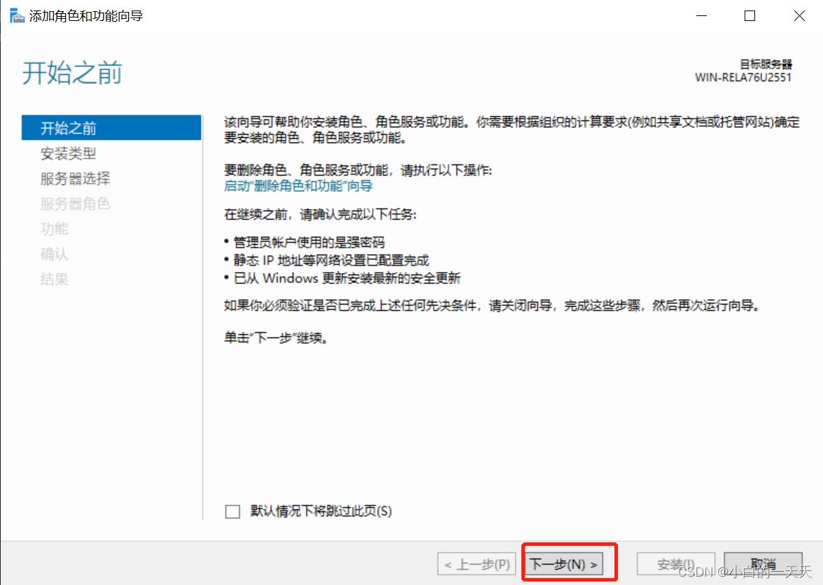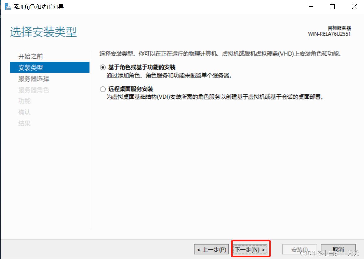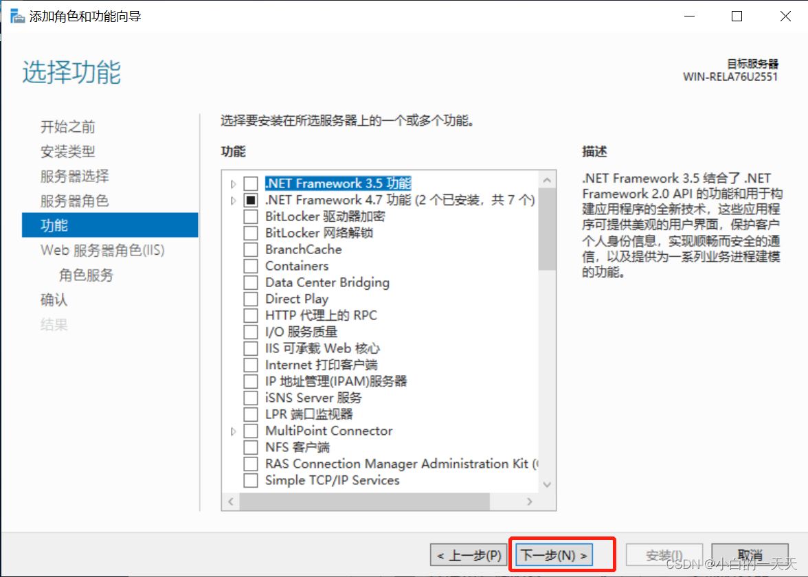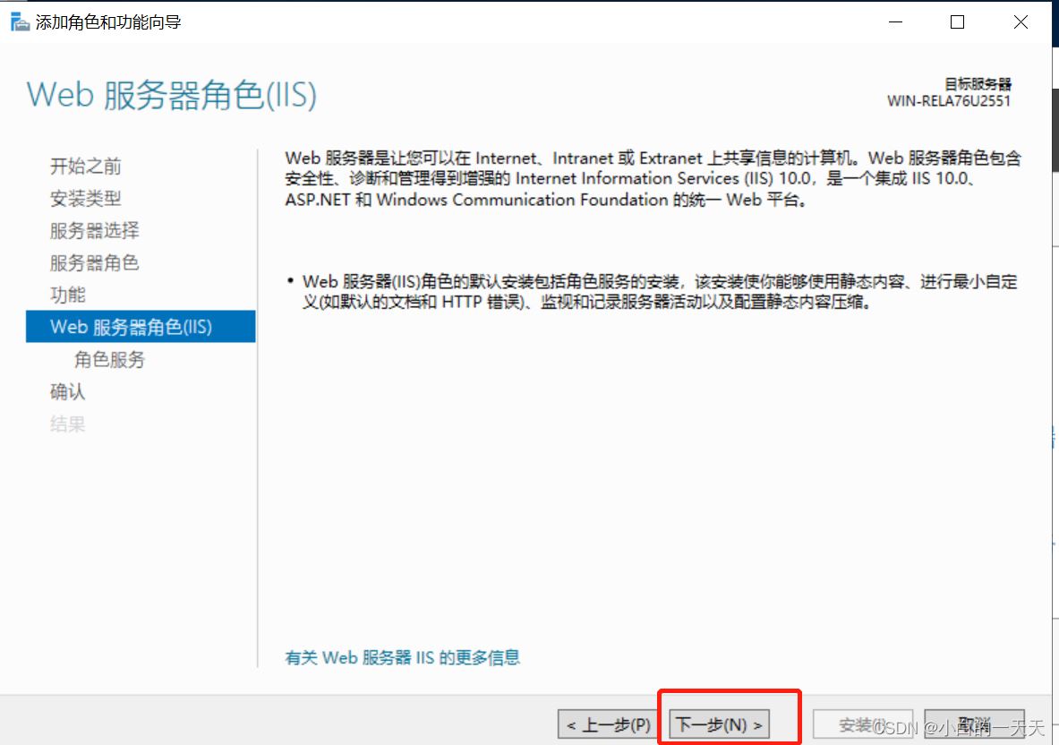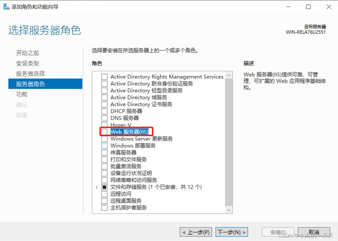 按照添加角色和功能向导,进行以下步骤操作: