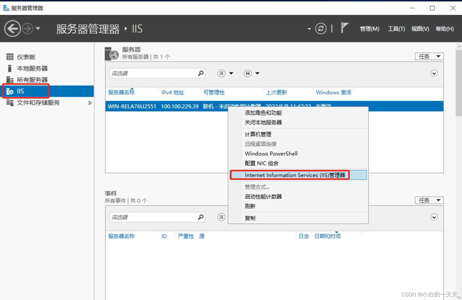 打开IIS,【右击服务器名称】——【选择Internet Information Services(IIS)管理器】