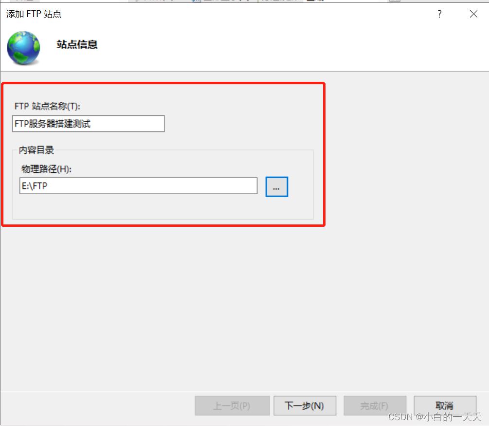填写FTP站点信息